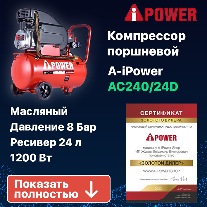 Мы выбрали 10 лучших цен на Компрессор масляный A-iPower AC240/24D 24л black-red. Перед тем как купить Компрессор масляный A-iPower AC240/24D 24л black-red посмотрите найденные предложения из Яндекс Маркета и других сайтов на основе XML фидов.