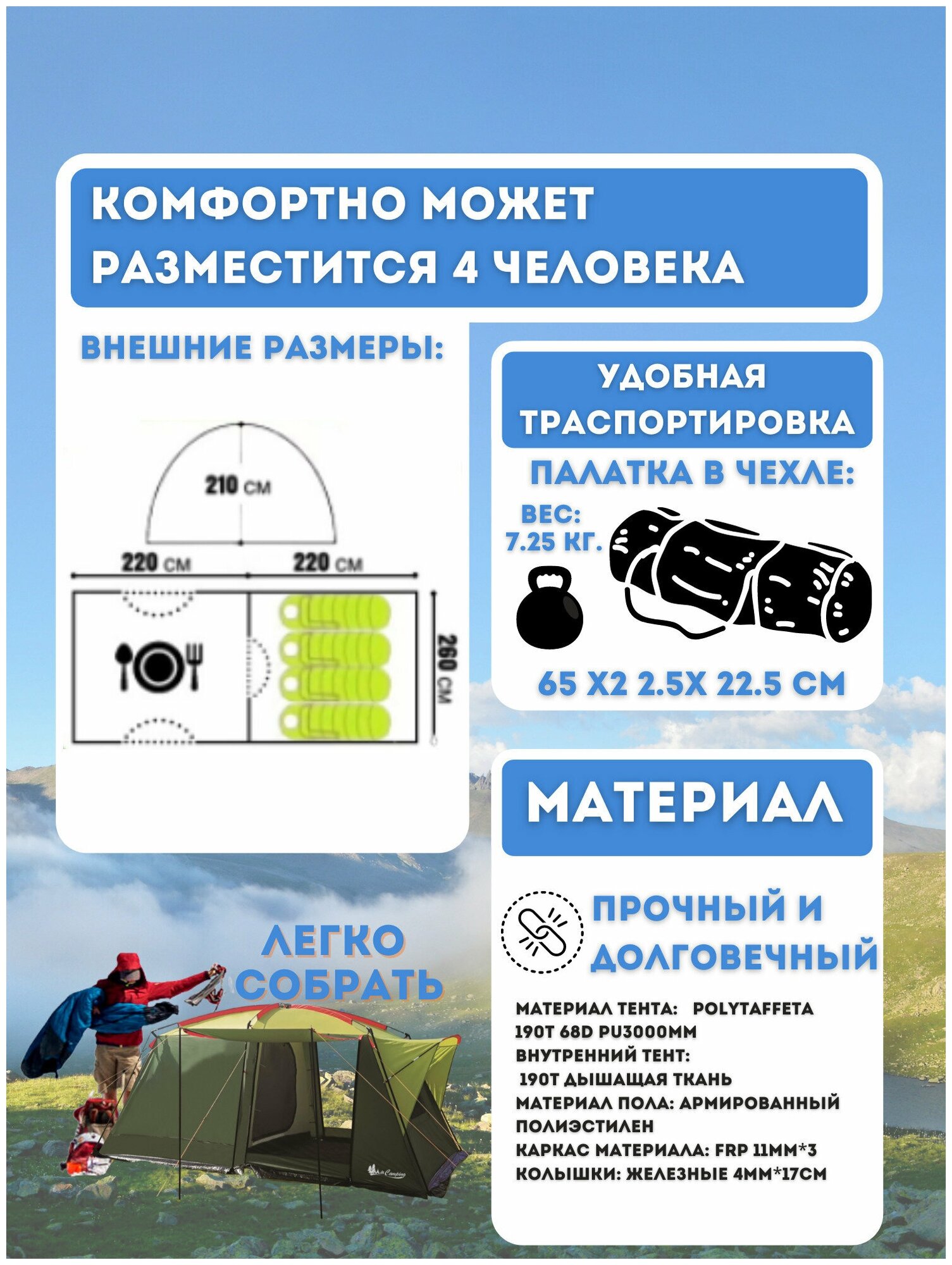 Палатка туристическая 4-х местная ART1006-4 информация: