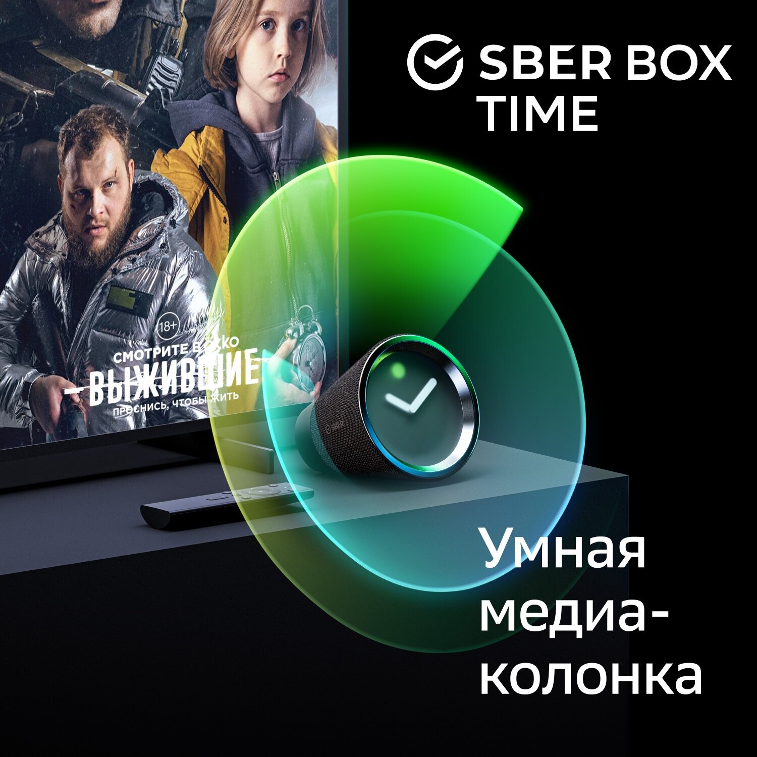 Умная колонка Sber SberBox Time/ТВ-приставка CберБокс Тайм с голосовым помощником, черный