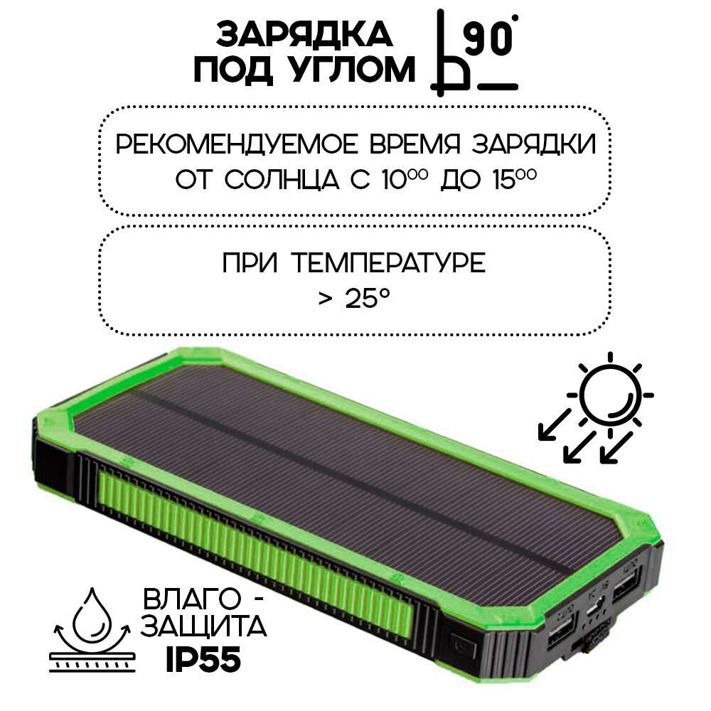 Внешний аккумулятор Power Bank Solar Charger 20 000, цвет - зеленый информация: