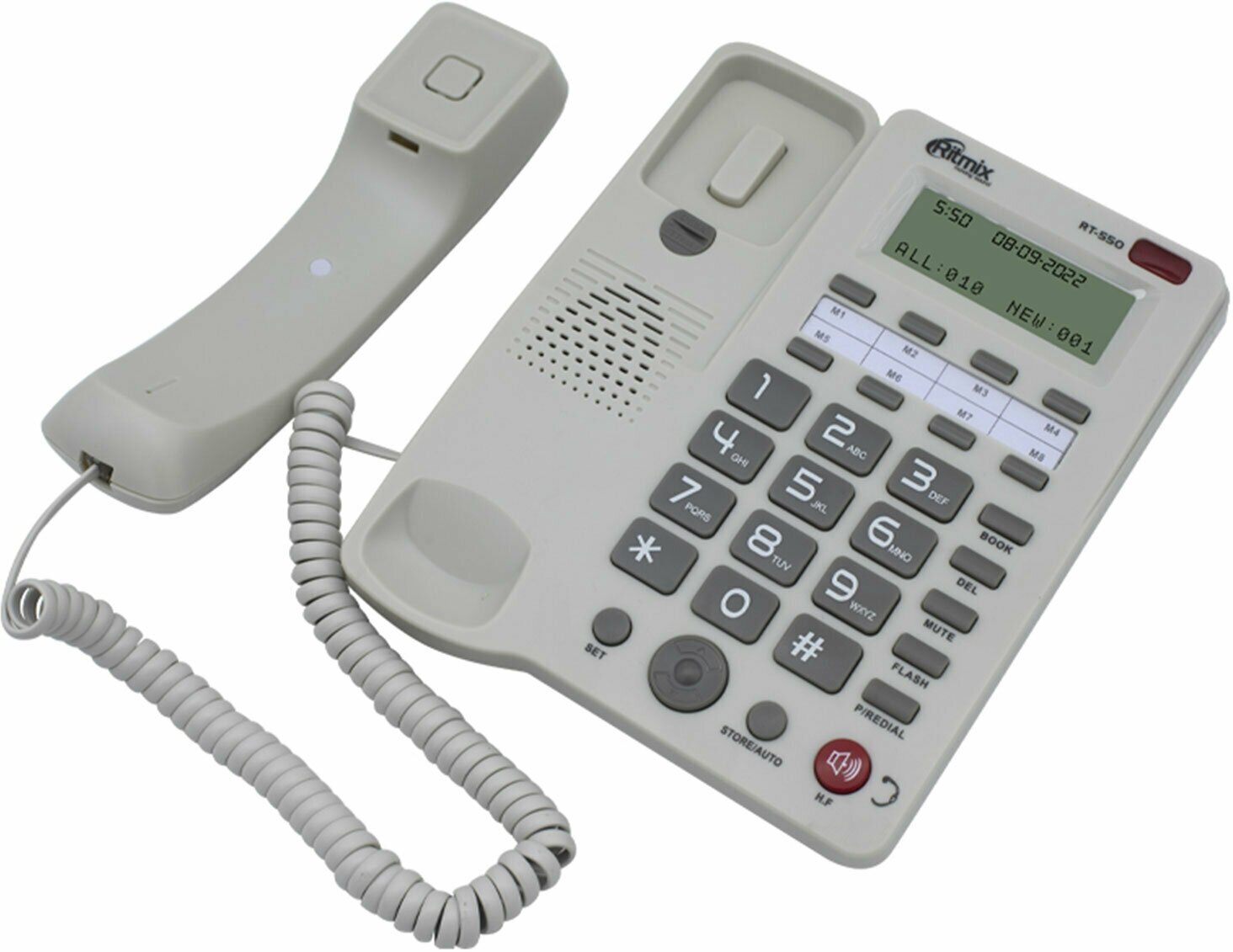 Телефон RITMIX RT-550 white, АОН, спикерфон, память 100 ном., тональный/импульсный режим, белый