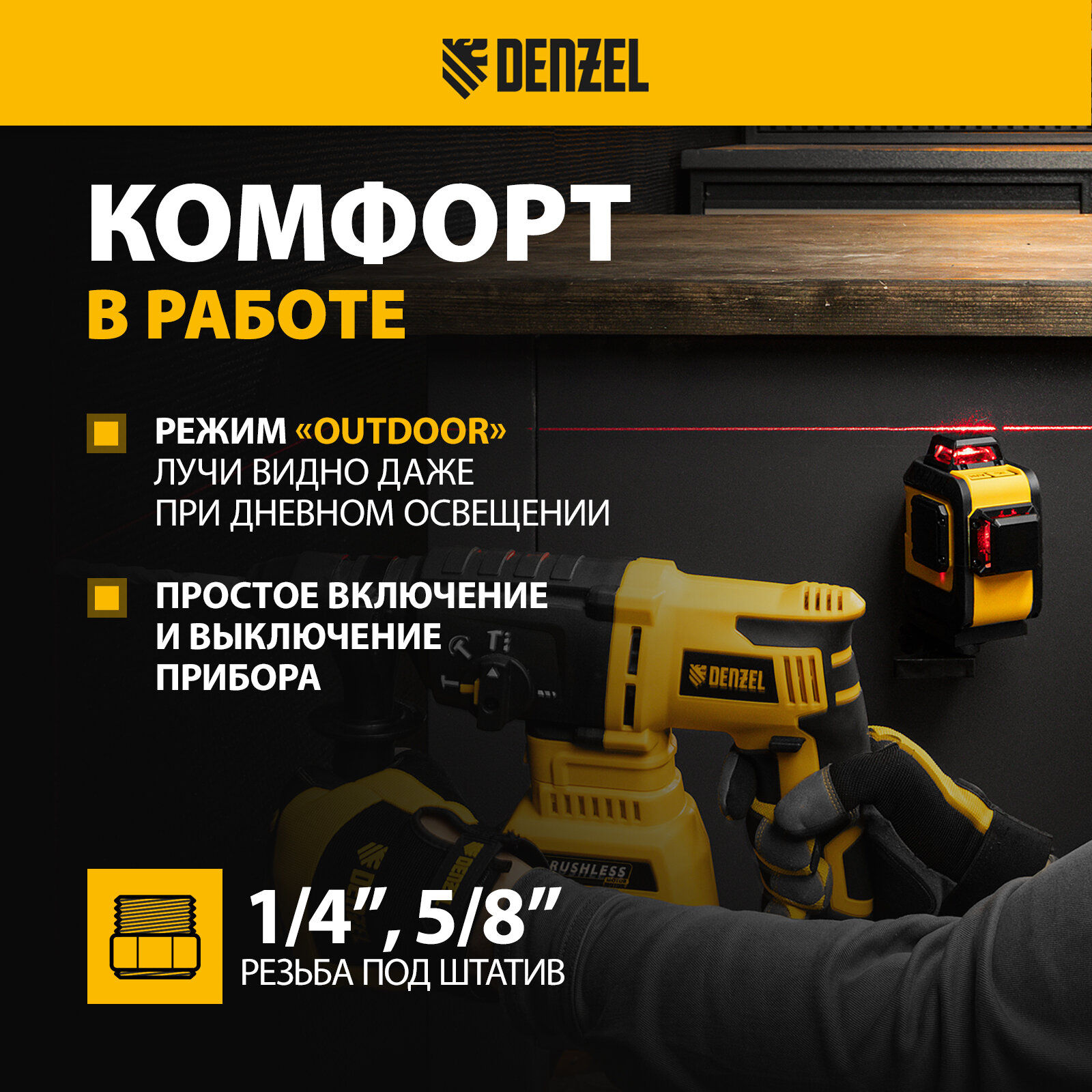 Отзывы на Лазерный нивелир DENZEL LX 360-2 Red, 30 м, 635 нм, Li 2800 мАч, 5/8 дюйм