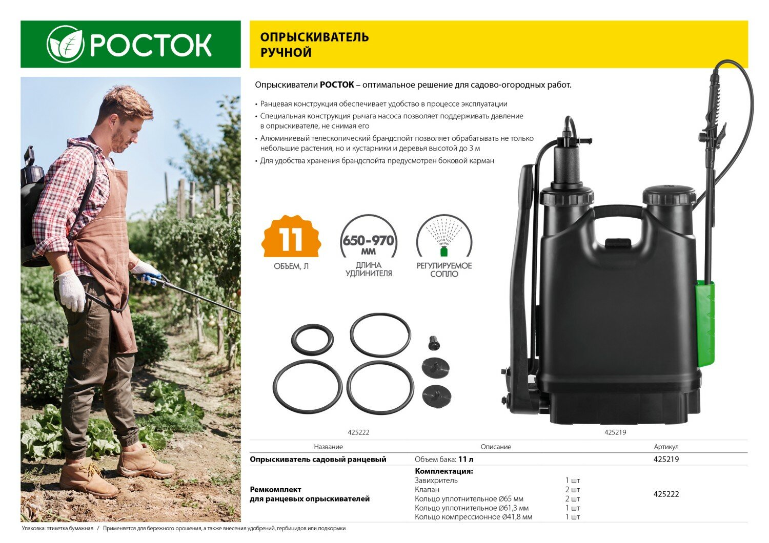 Росток ремкомплект для ранцевых опрыскивателей, для арт 425216 и 425219