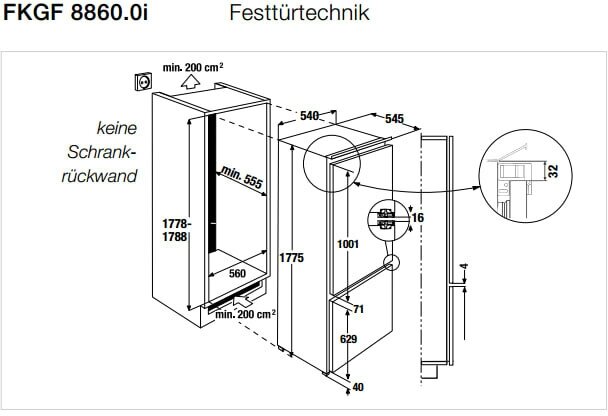 Встраиваемый холодильник Kuppersbusch FKGF 8860.0i информация: