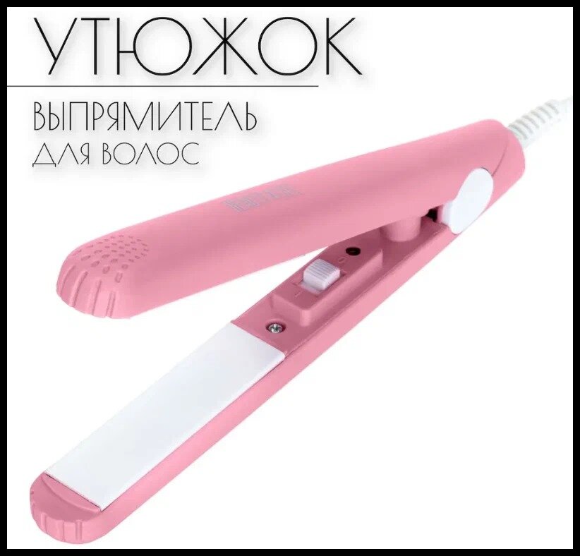 10 цен на Мини утюжок для волос, плойка выпрямитель. Щипцы. Цвет розовый