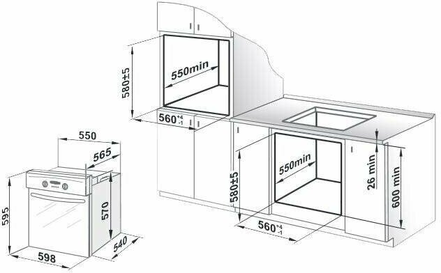 Духовой шкаф встраиваемый LEX EDM 077 C IV, 60 см, с конвекцией, механические ручки, объем 60 л, аналоговый таймер, телескопические направляющие.