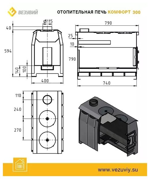 Печь отопительная Везувий Комфорт 300 (ДТ-3) информация: