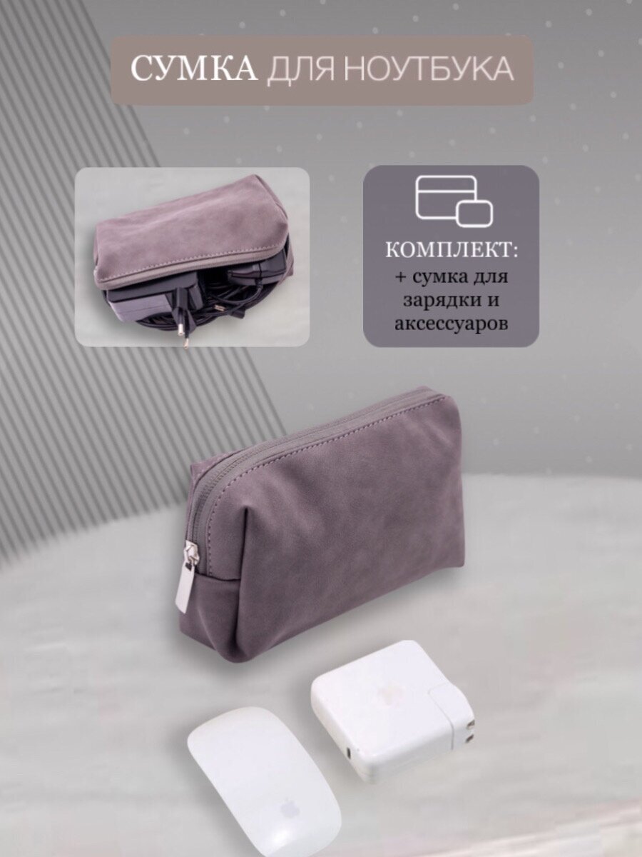 Сумка для ноутбука 15.6 дюймов замшевая для мужчин и женщин, светло-серая 2 499 ₽