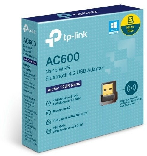 TP-Link Archer T2UB Nano AC600 Ультракомпактный двухдиапазонный Wi-Fi USB-адаптер Bluetooth 4.2
