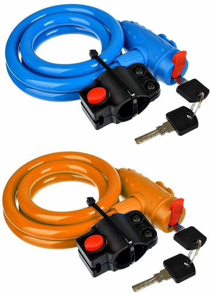 Замок велосипедный противоугонный тросовый 12x800мм, металл, пластик, 3 цвета, арт.187