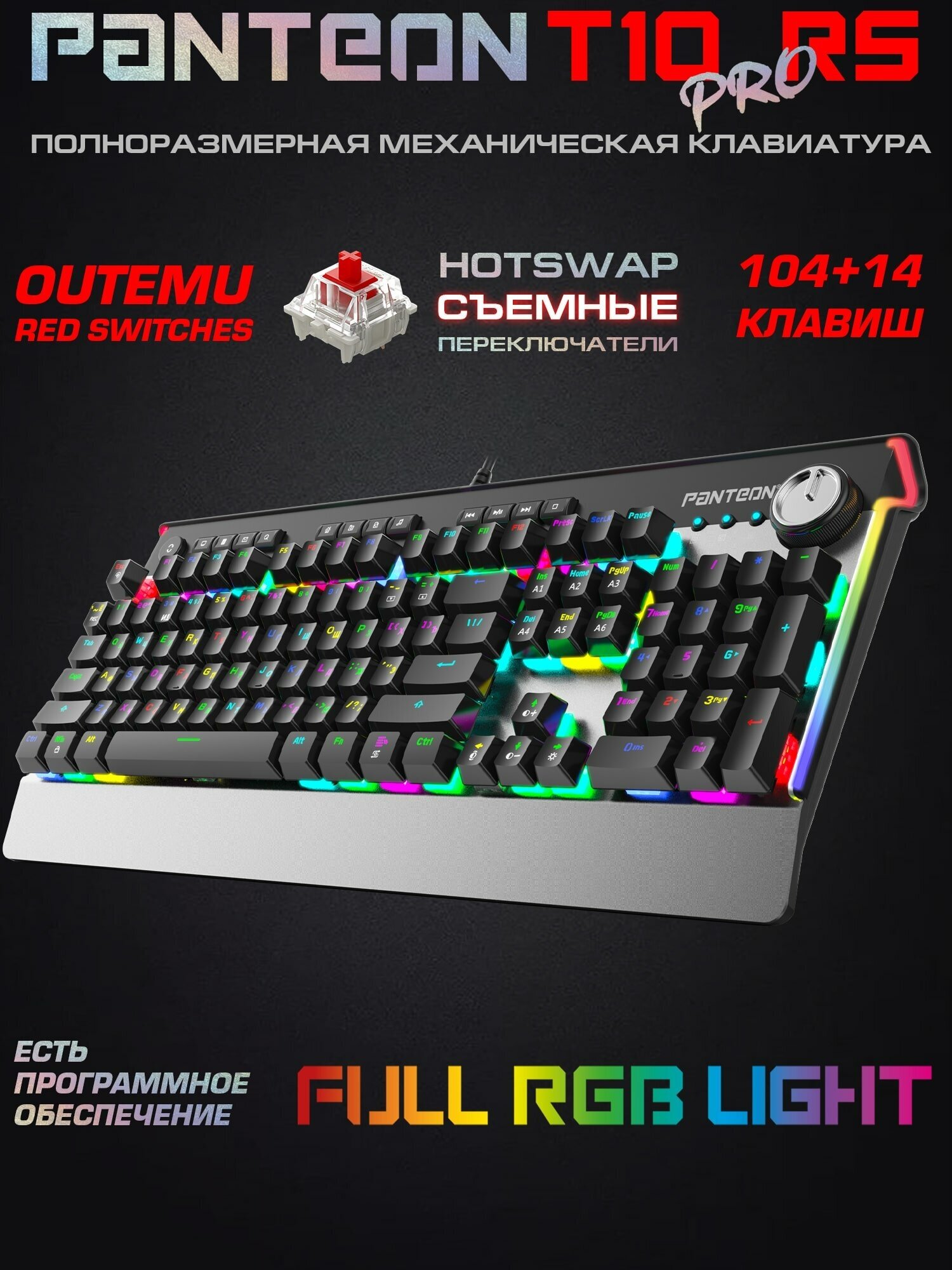 Проводная механическая игровая клавиатура с rgb-подсветкой PANTEON T10 PRO RS информация: