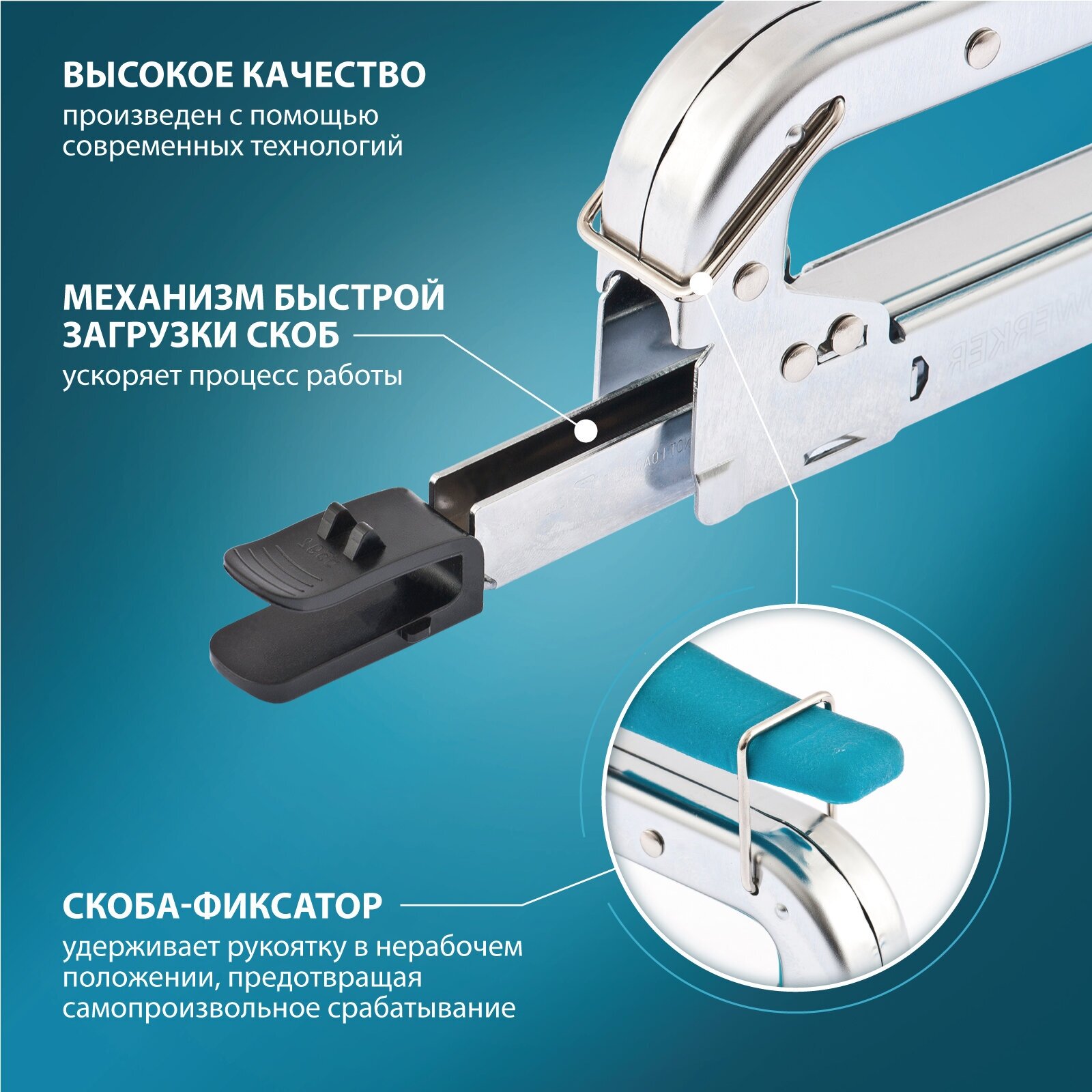 Степлер строительный NAGAN тип 53, скобы 4-14 мм металлический, регулировка удара, двухкомпонентная рукоятка