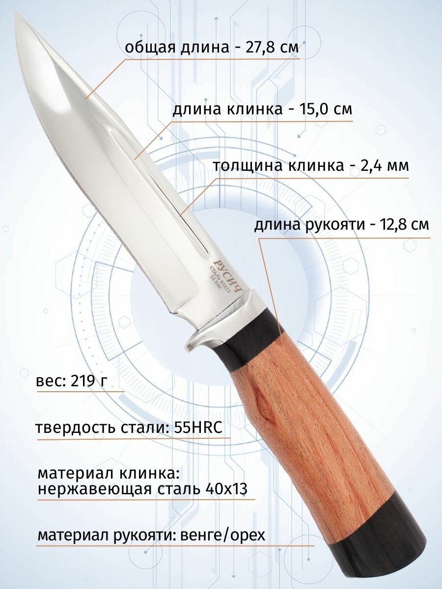 Туристический нож Pirat VD44 "Русич", Длина лезвия 150мм, Чехол, рукоять из ореха из венге информация: