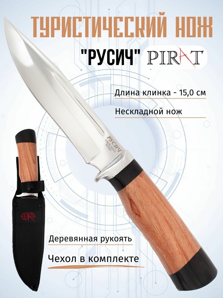 Отзывы на Туристический нож Pirat VD44 "Русич", Длина лезвия 150мм, Чехол, рукоять из ореха из венге