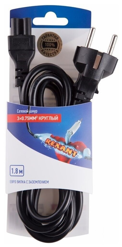 Отзывы на Сетевой трехжильный шнур 0.75 мм2 с заземлением и разъемом С14 (1.8 м, 10А)