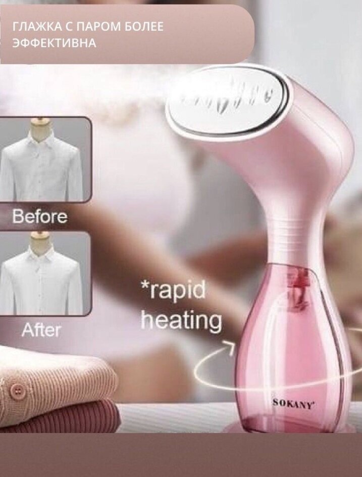 Ручной отпариватель/SK-3061/керамический лист нагреватель/MODERN/глажка на 360°/для различных видов ткани как шелк, нейлон /розовый