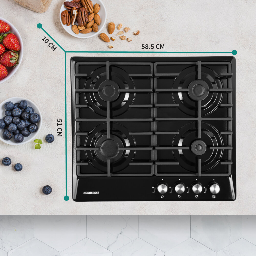 10 цен на Газовая варочная поверхность NORDFROST HS 6043 B, черная эмаль, чугун решетки, газ-контроль