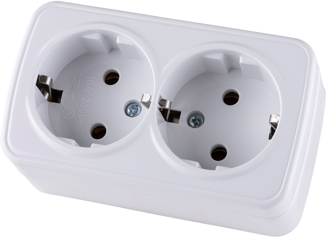 Розетка двойная 2П+3 открытой установки IP20 16А, белая "Дача" Народная информация: