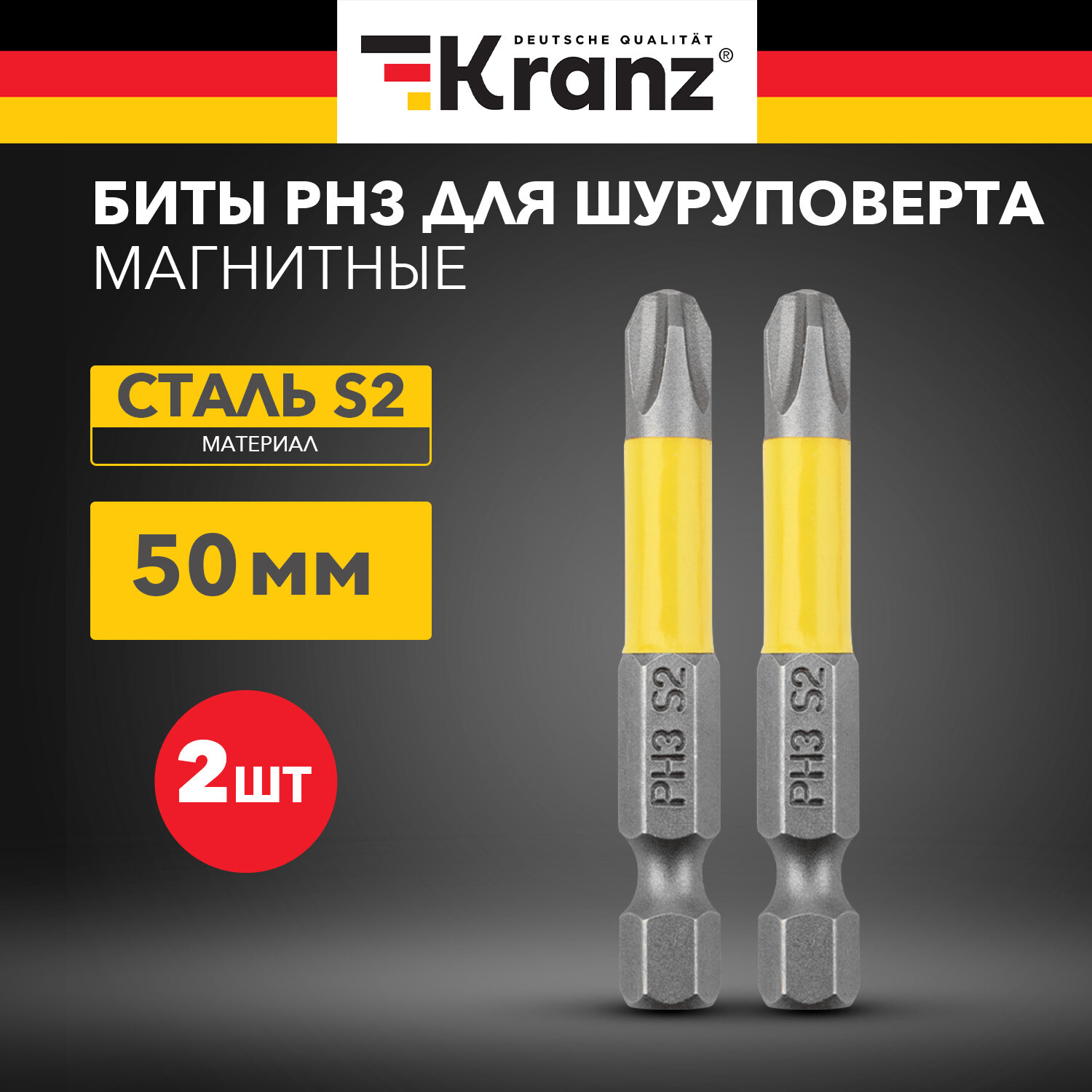 Бита износостойкая для шуруповерта KRANZ с магнитным наконечником PH3х50 мм, 2 штуки информация:
