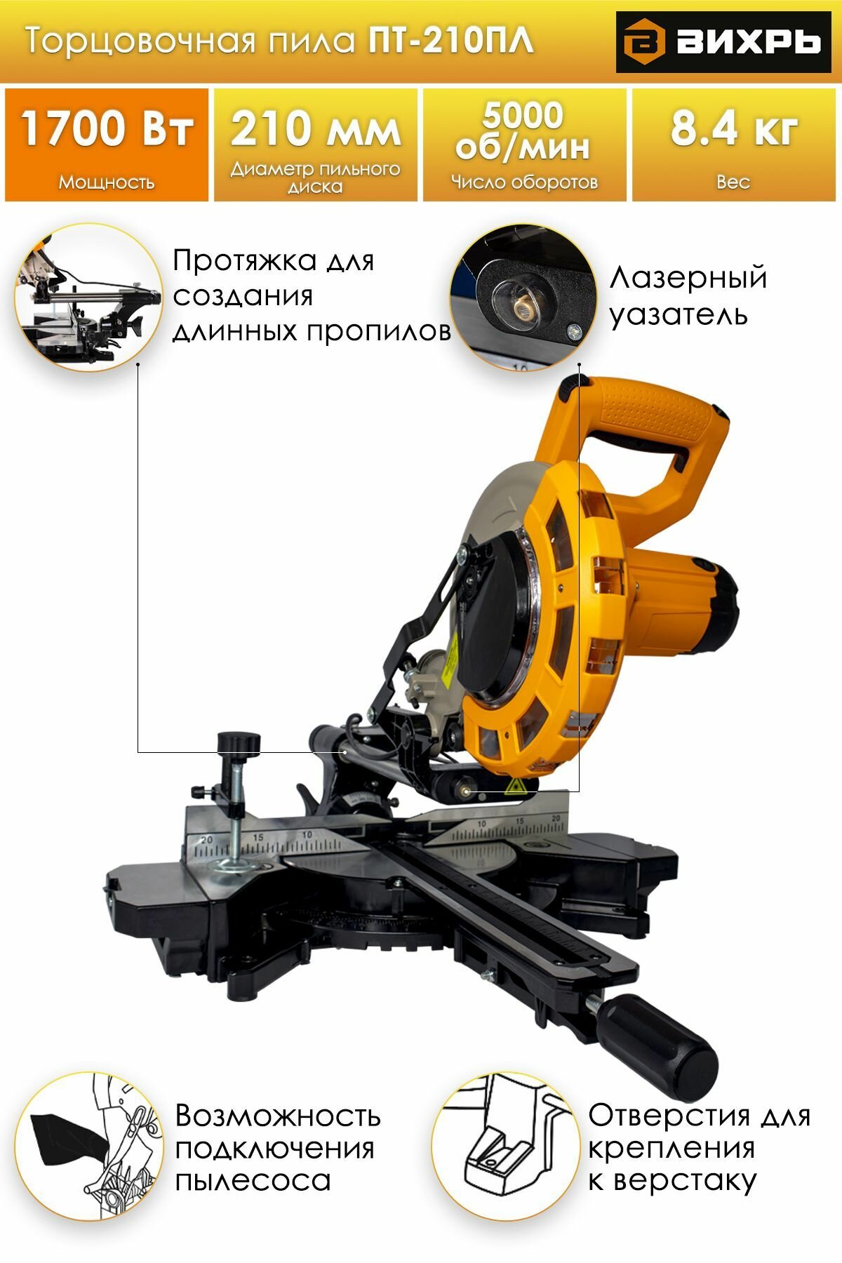 Торцовочная пила Вихрь ПТ-210ПЛ информация: