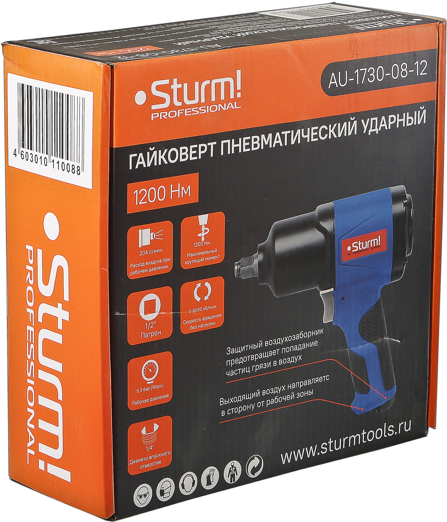 Пневматический гайковерт, 1200 Нм, 1/2" Sturm AU-1730-08-12 информация: