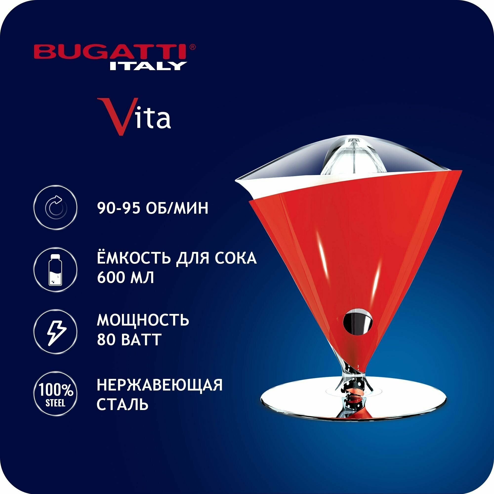Соковыжималка для цитрусовых Bugatti VITA 55-SVITAC3 красный глянцевый информация: