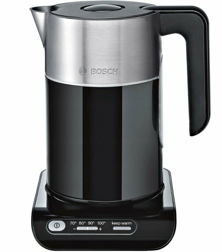 Bosch TWK8613P Чайник, 2400Вт, черно-серебристый, терморегулятор