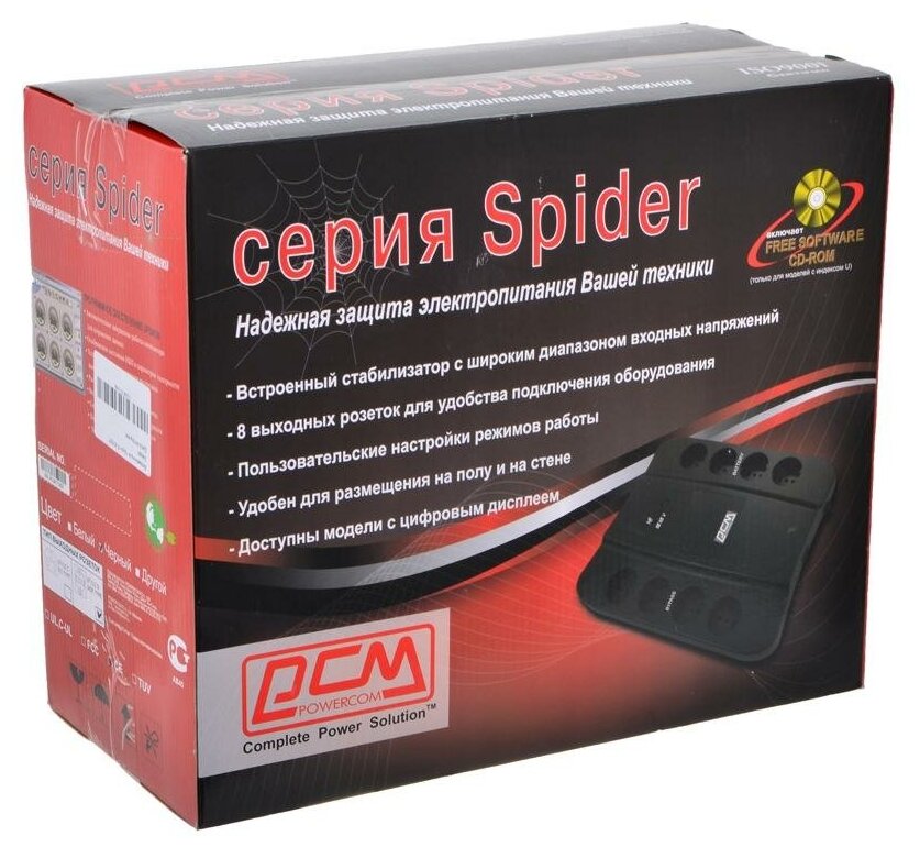 ИБП Powercom spd-1000u Spider 1000VA/550W USB,AVR,RJ11,RJ45 (4+4 Euro output) . 16 475 ₽