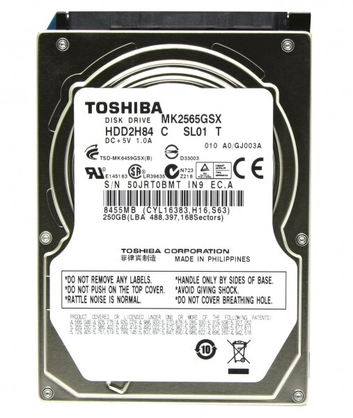 Жесткий диск Toshiba MK2565GSX 250Gb 5400 SATAII 2,5" HDD информация: