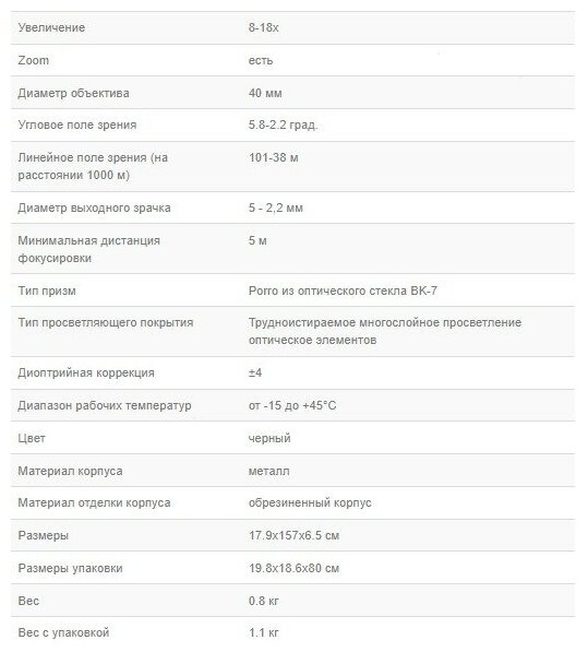Бинокль Veber ZOOM 8-18*40 (черн.) информация: