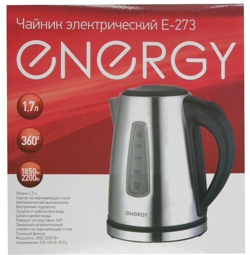 10 цен на Чайник электрический ENERGY E-273, металл, 1.7 л, 2200 Вт, подсветка, серебристый