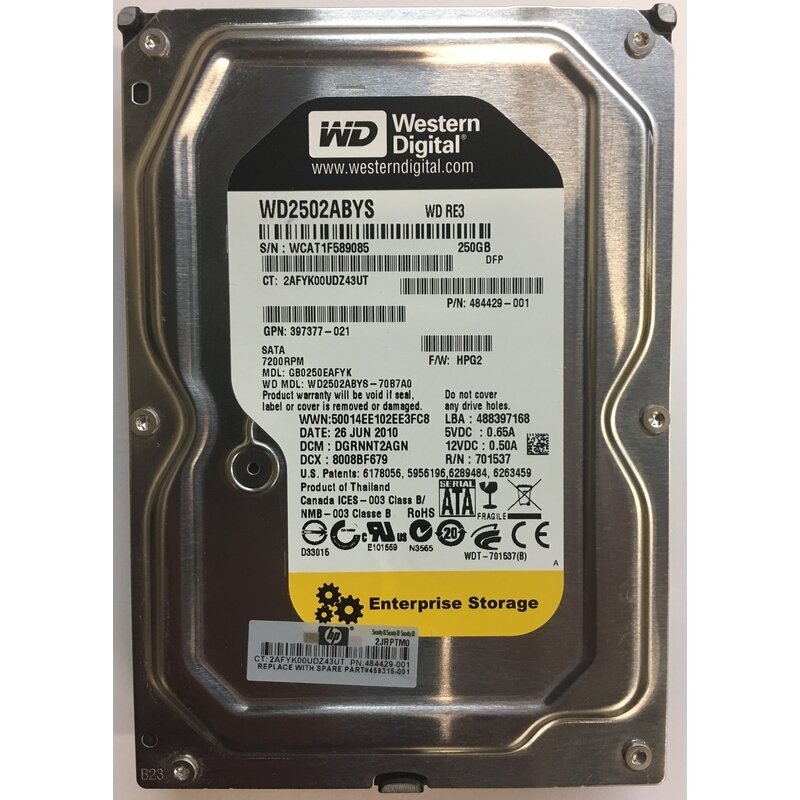 Жесткий диск HP SATA 250Gb 7.2K MDL GB0250EAFYK информация: