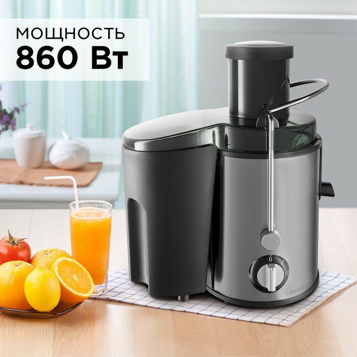 Соковыжималка RJ-M911, 860 Вт, 20000 об/мин, 750 мл, серебристая 8 259 ₽