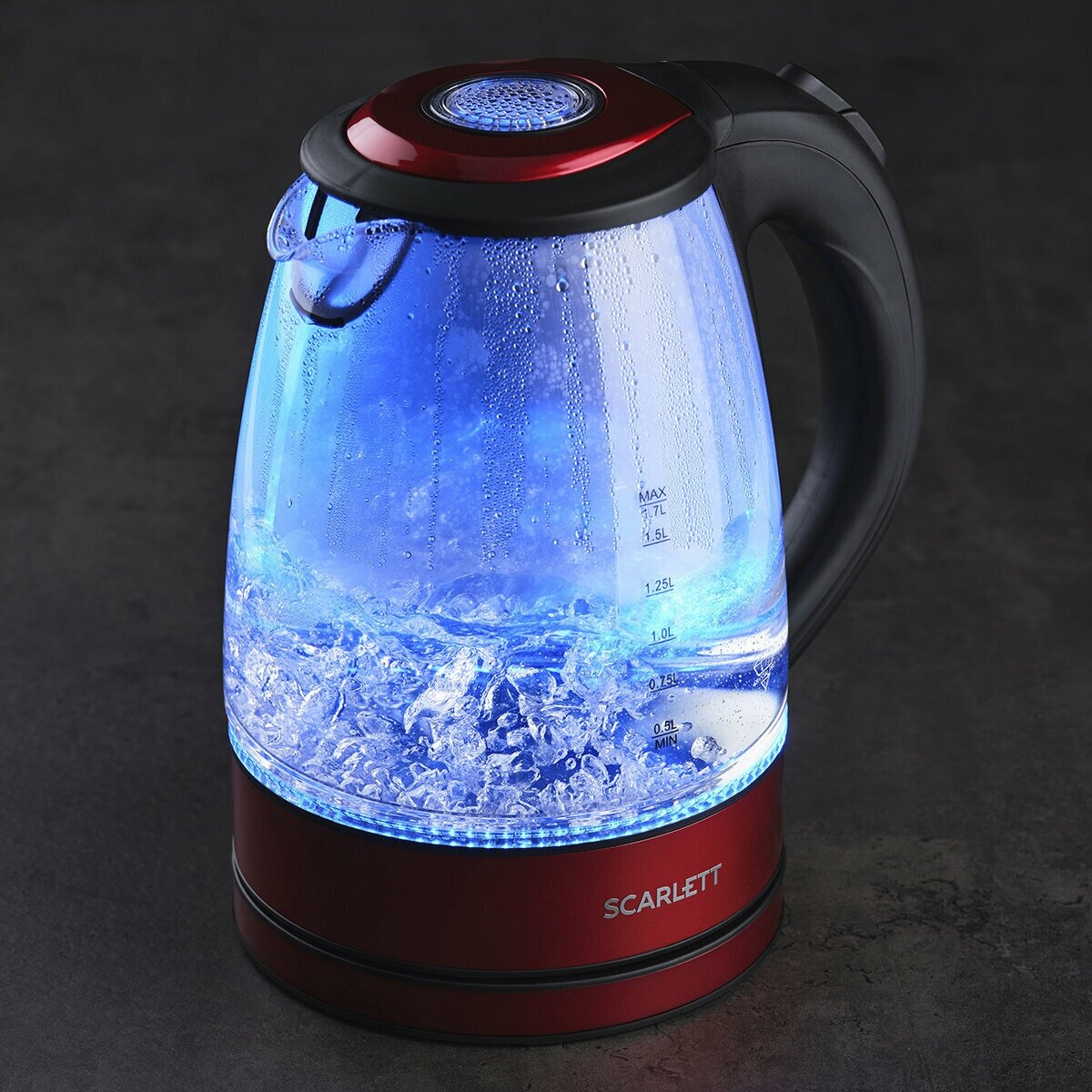 Отзывы на Чайник электрический SCARLETT SC-EK27G99, стекло, 2200Вт, 1.7л, красный