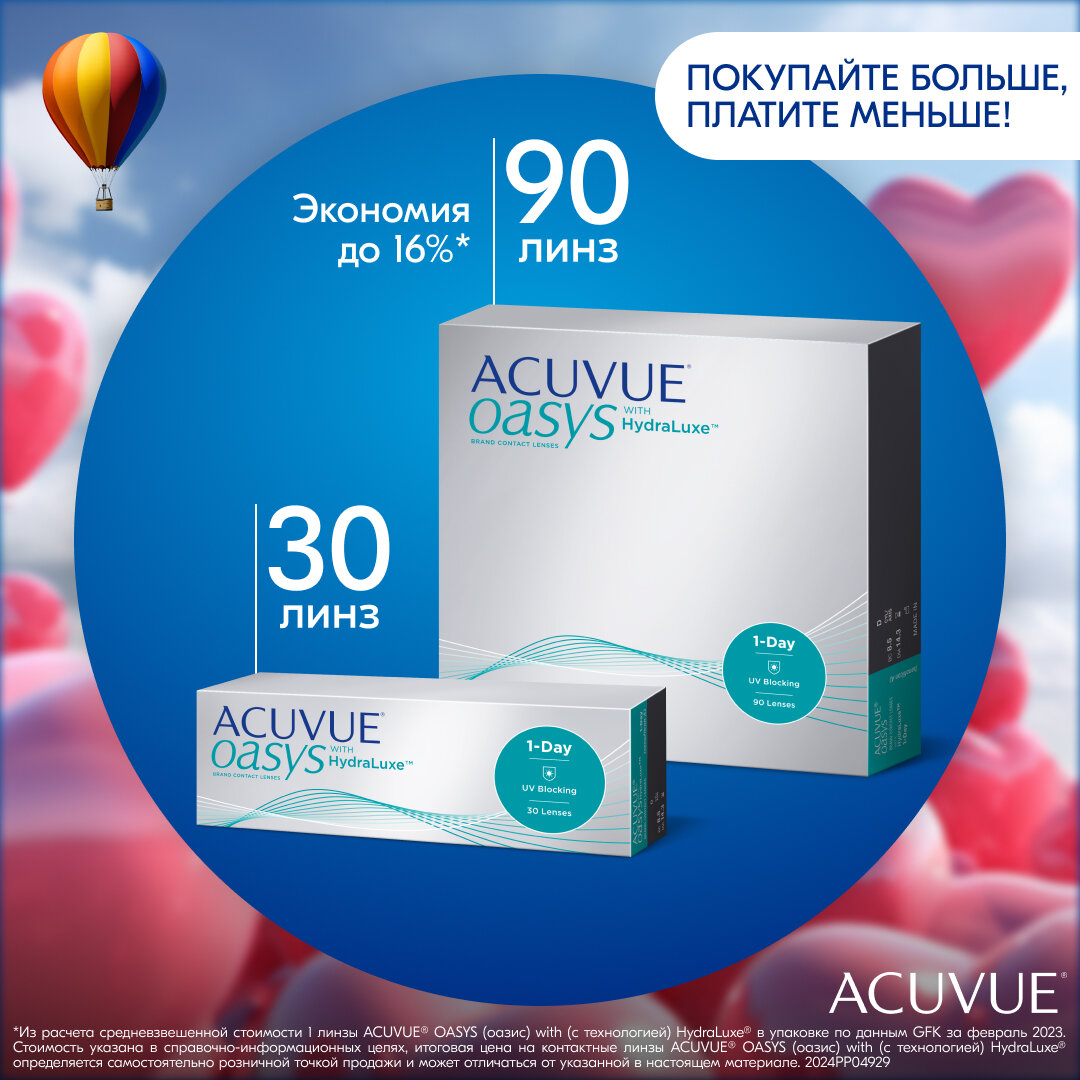 ACUVUE Контактные линзы OASYS with HydraLuxe (90), 90 шт., + 1.00 / 8.5 / Однодневные