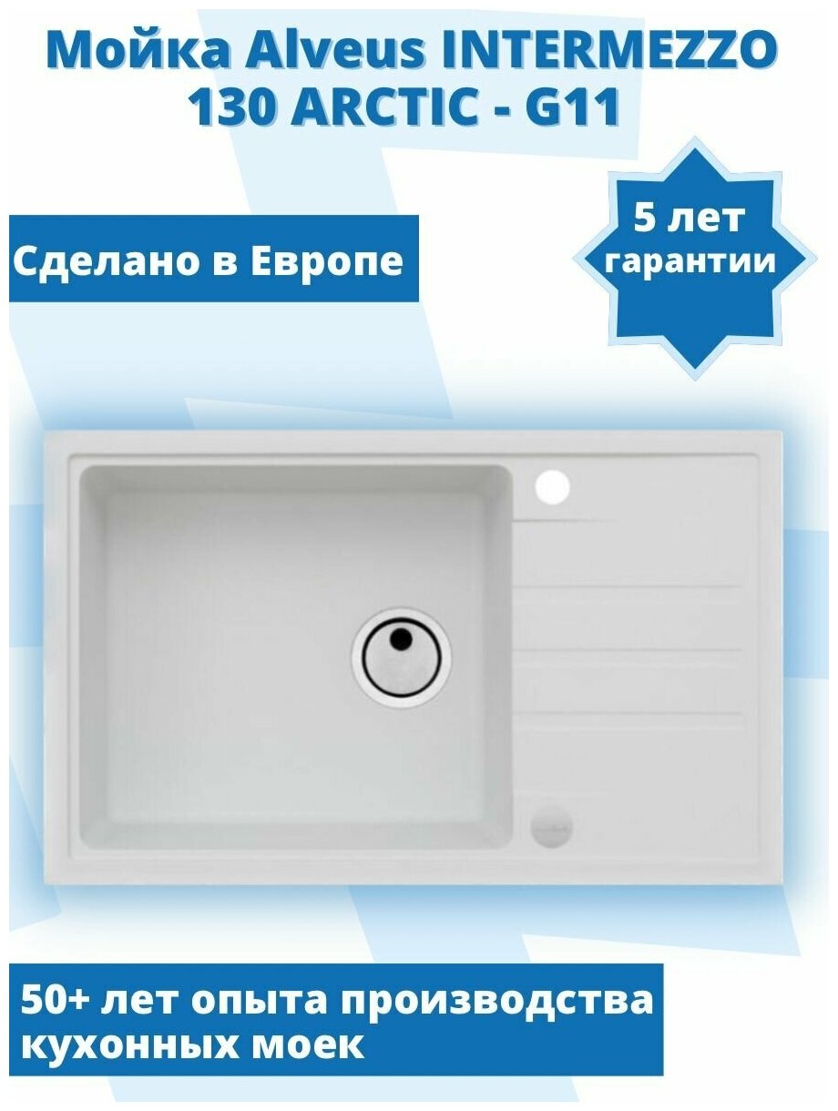 Кухонная мойка ALVEUS INTERMEZZO 130 GRANITAL ARCTIC - G11 780X480 X200 белый (1117046) 28 500 ₽