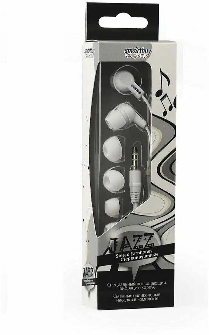 10 цен на Проводные внутриканальные стерео наушники SmartBuy JAZZ SBE-710, белые, шнур 1.2м, 20/20000Гц, 1 шт