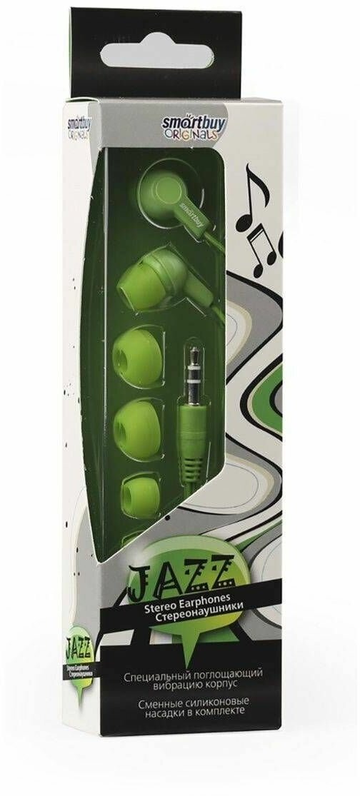 Внутриканальные наушники Smartbuy JAZZ, зеленые, 3 пары силиконовых вставок (SBE-720)/60 139 ₽