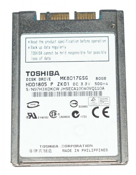 Жесткий диск Toshiba MK8017GSG 80Gb 5400 SATA 1,8" HDD информация: