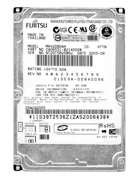 Жесткий диск Fujitsu MHV2080AH 80Gb 5400 IDE 2,5" HDD информация: