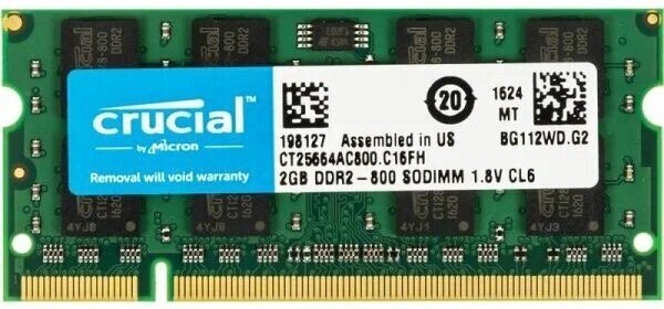 Оперативная память Crucial 4 ГБ (2 ГБ x 2 шт.) DDR2 800 МГц SODIMM CL6 CT2KIT25664AC800 информация: