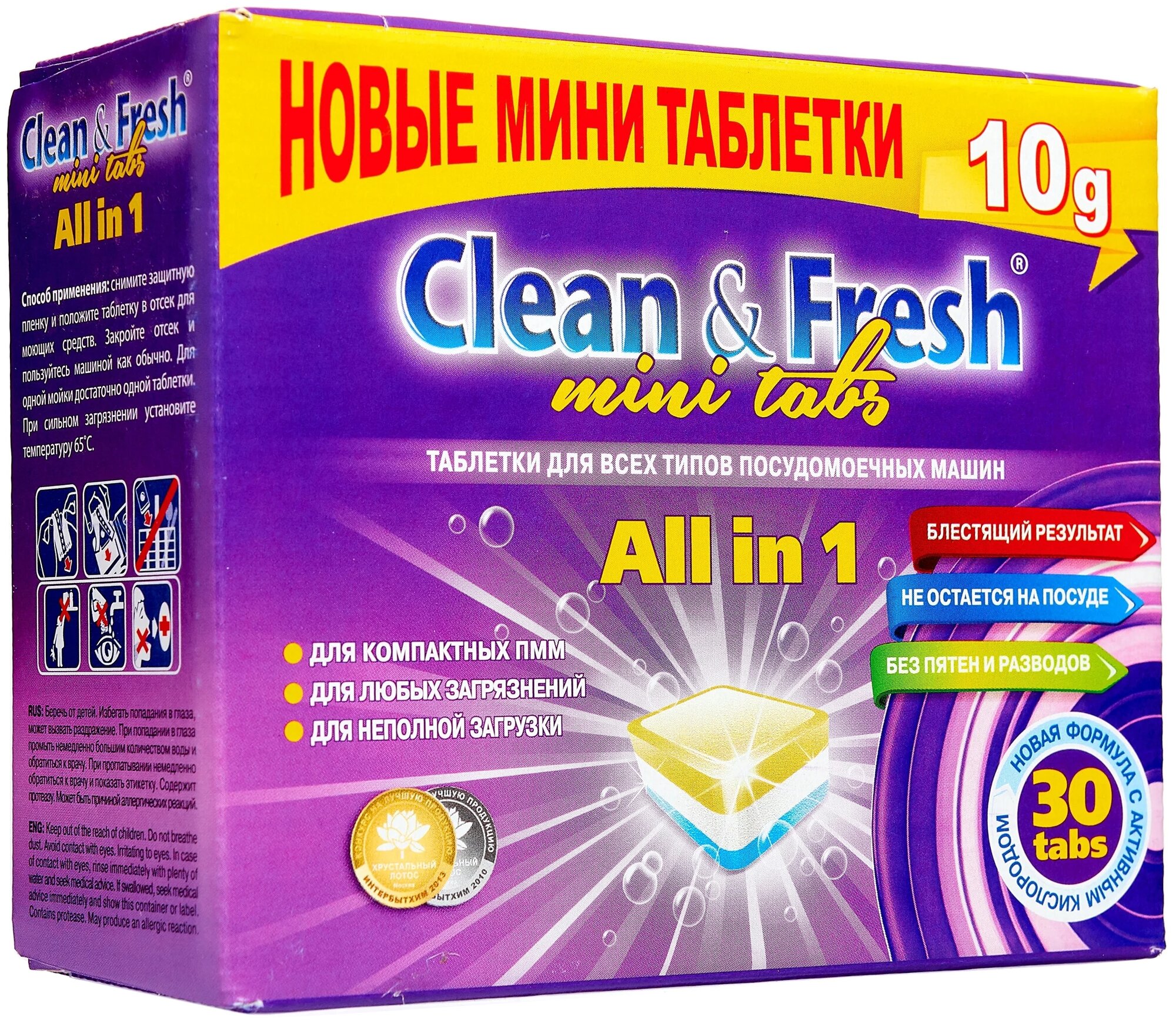 Мини-таблетки для посудомоечных машин CLEAN & FRESH CLEAN&FRESH All in 1, 30 шт*10 г
