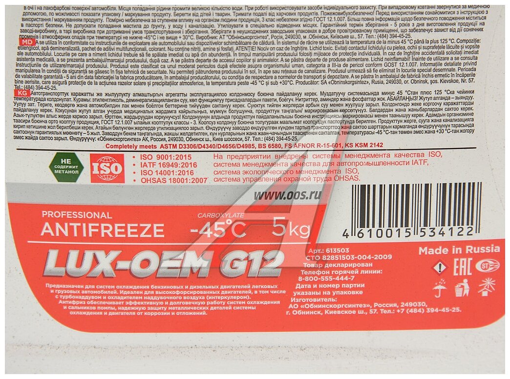 Антифриз "Luxe" Long Life (5 Кг) Красный (G12+) Luxe арт. 673 информация: