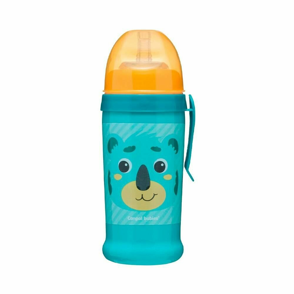 CANPOL Поильник-непроливайка спортивный с трубочкой и крышкой, 350 мл, 12+, цвет: бирюзовый информация: