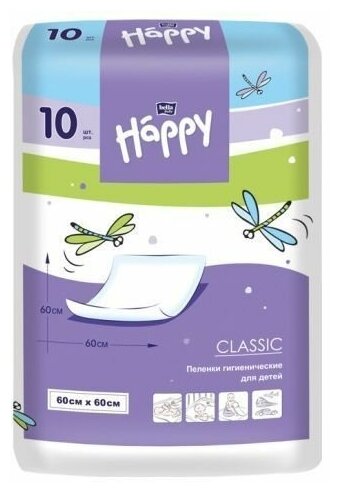 Пелёнки гигиенические HAPPY 10шт 60*60 дет. информация: