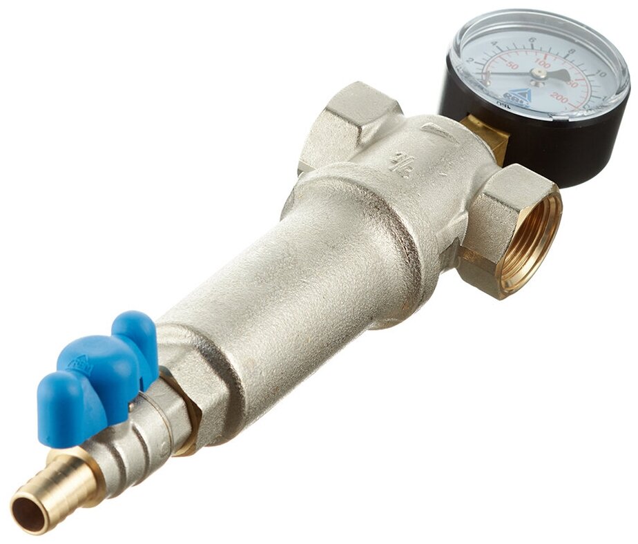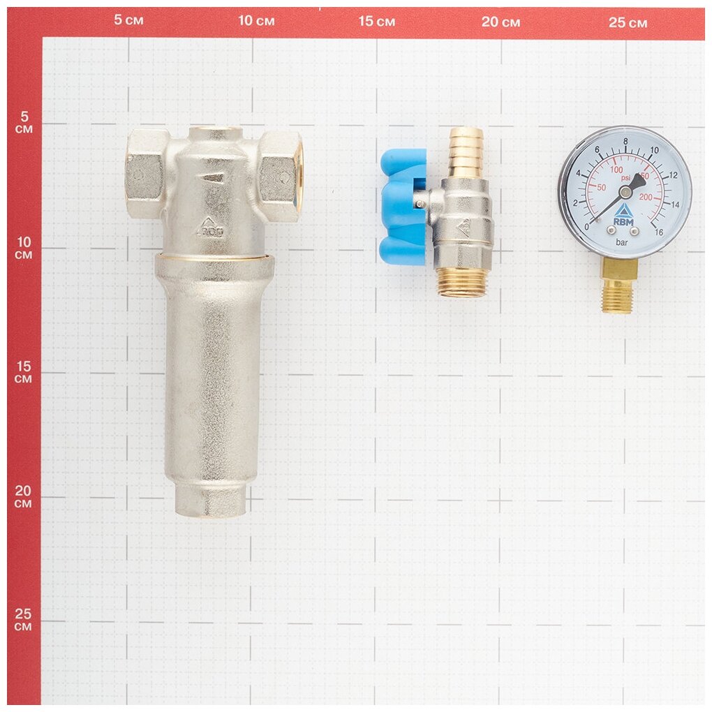 Фильтр промывной RBM ВВ 1/2" со сливным шаровым краном и манометром 100 мкм 01260410