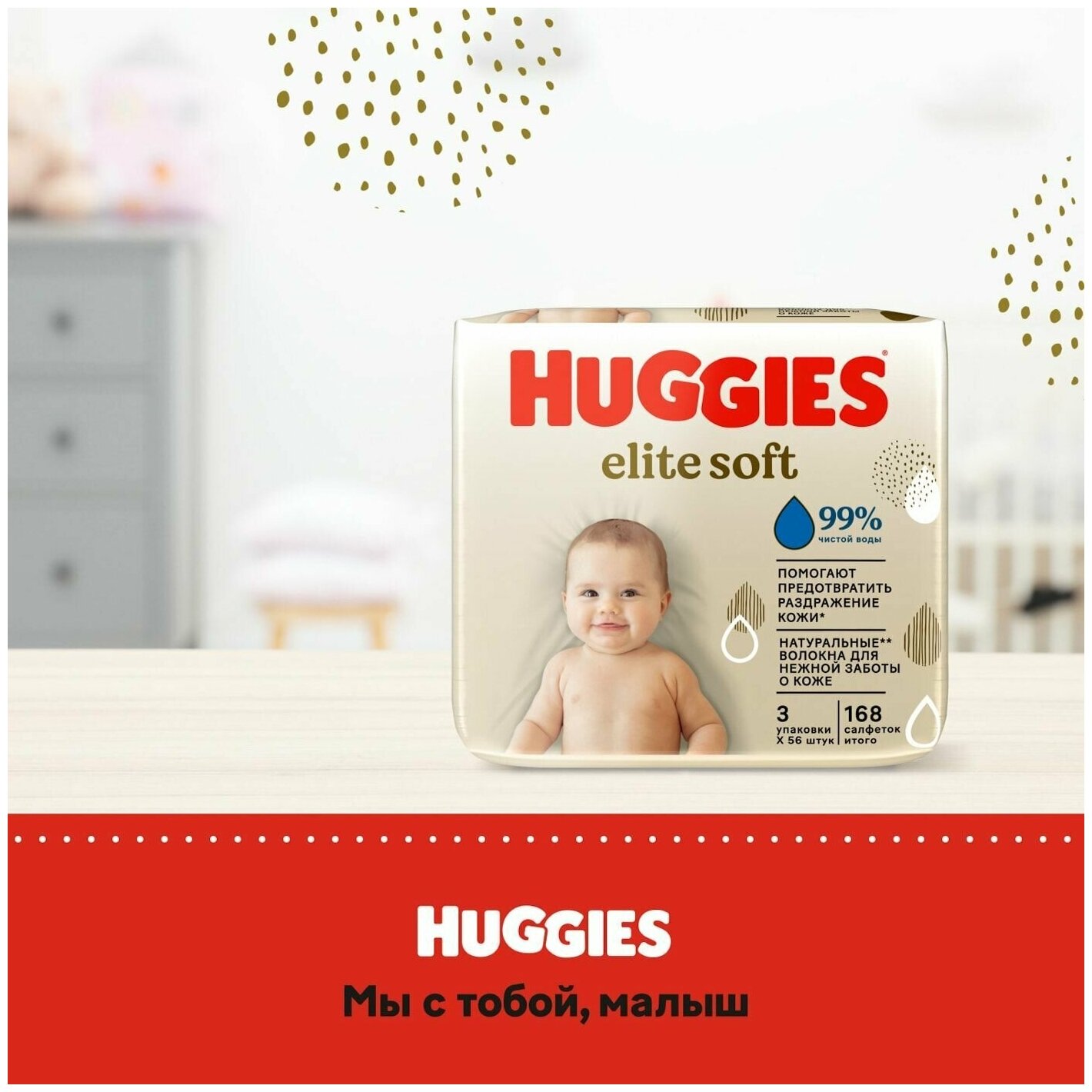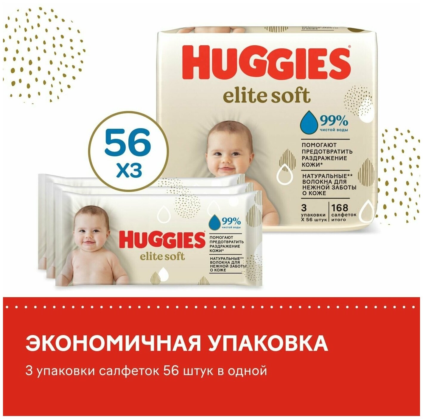 Салфетки влажные Huggies Elite Soft 168шт информация: