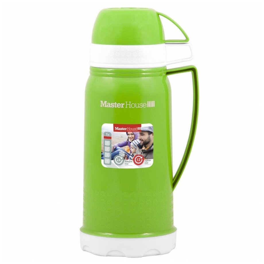 Термос Венеция стекл. колба/пластик, узкое горло, 1л, чашки 2шт, зеленый, 60030/60658 Master House (арт. 555286)