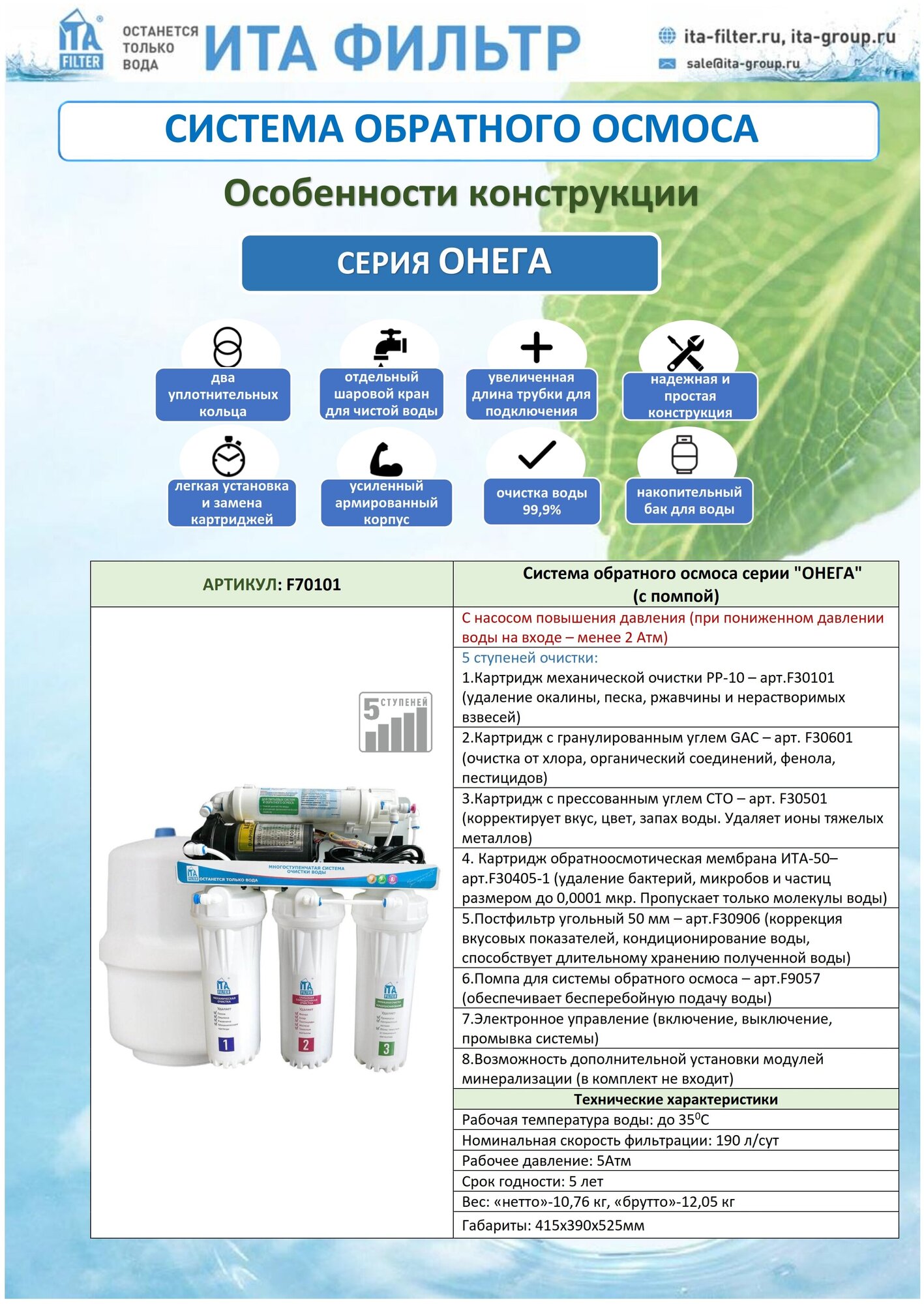 Система обратного осмоса серии "Онега" (с помпой) ITA Filter F70101 информация: