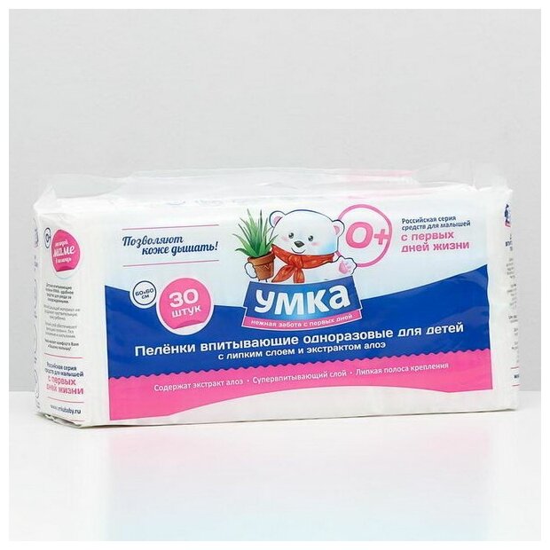 Одноразовая пеленка Умка с экстрактом алоэ 60х60, 30 шт.
